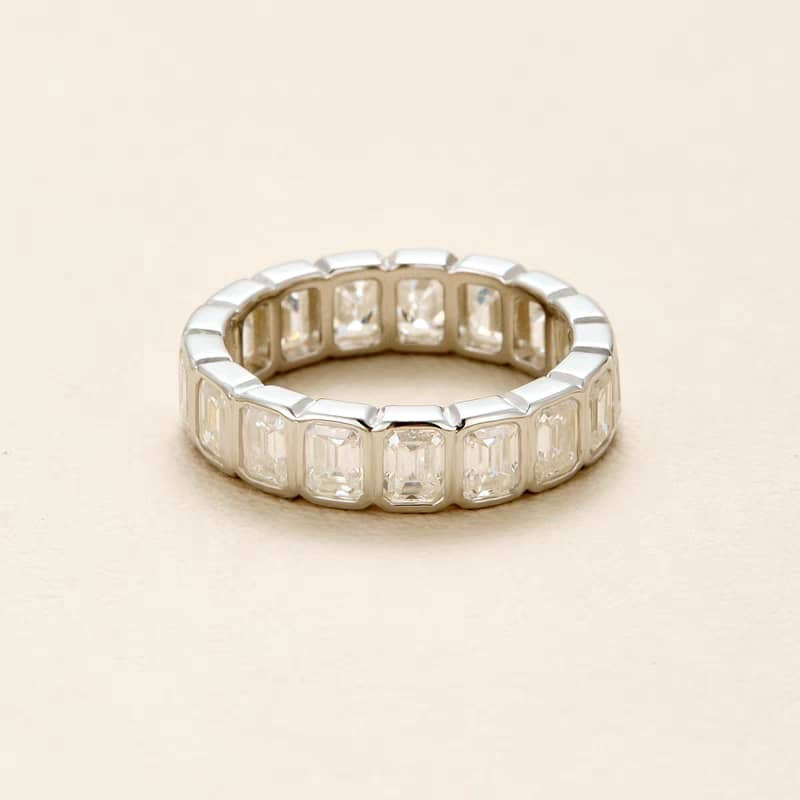 Emerald-Cut Moissanite Eternity Ring in Sterling Silver