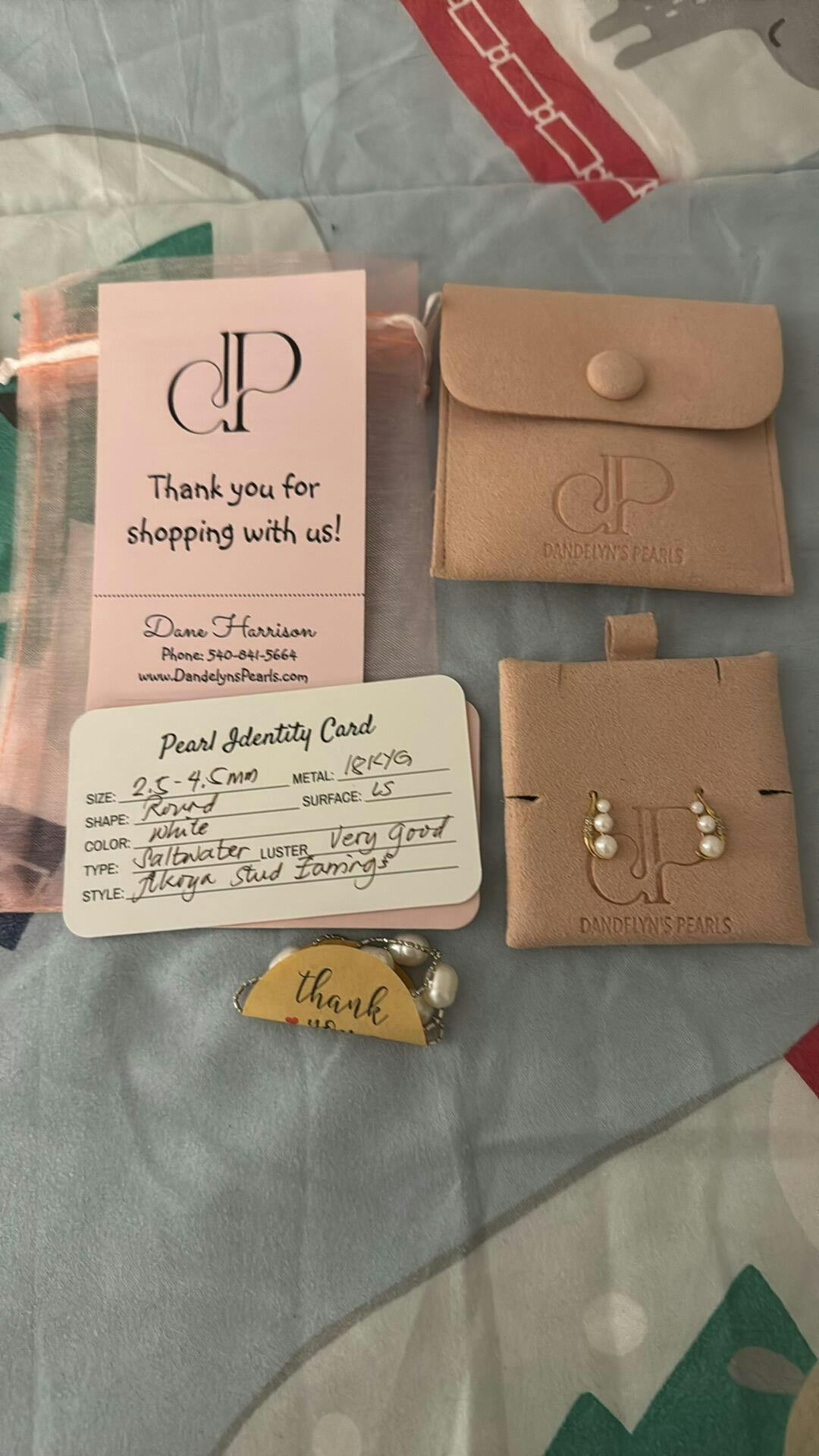 "Dandelyn's Pearls are genuinely beautiful, and elegant. I’m always pleased everytime I receive each set of jewelry from her.